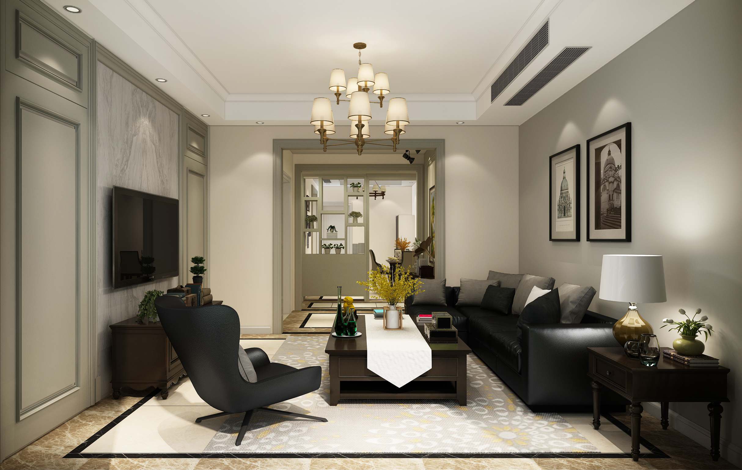 綠(lǜ)城翡翠湖玫瑰園-客廳裝修效果圖