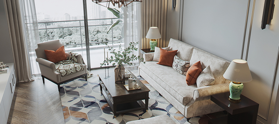綠(lǜ)地中心133平方美式裝修效果圖