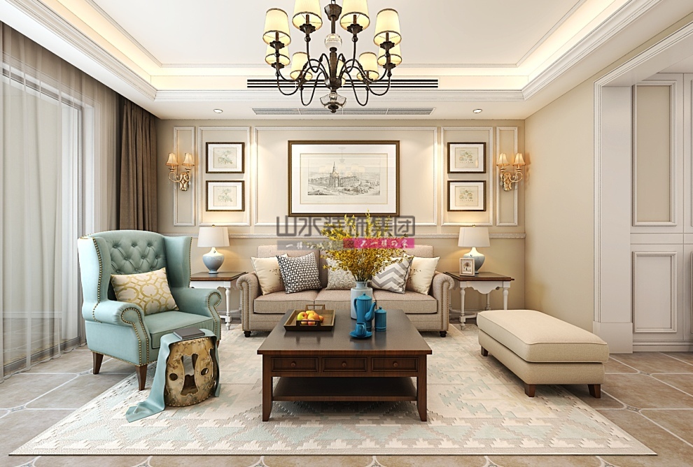 華地紫園158平方美式裝修效果圖
