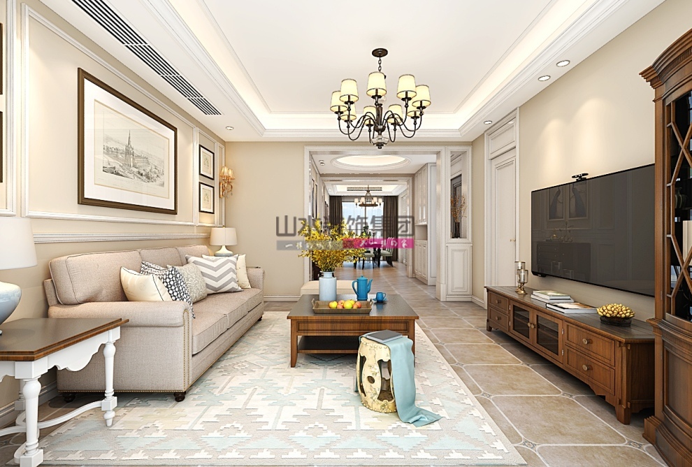萬達臨湖苑139平方美式裝修效果圖
