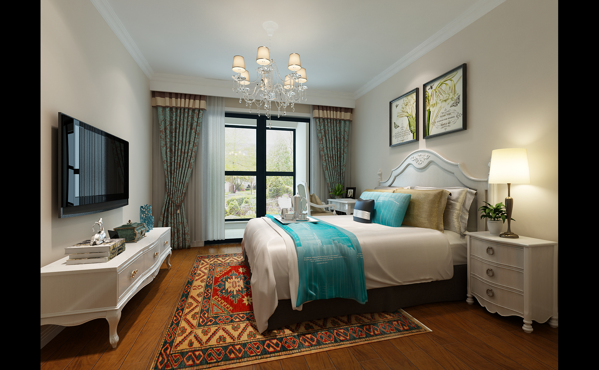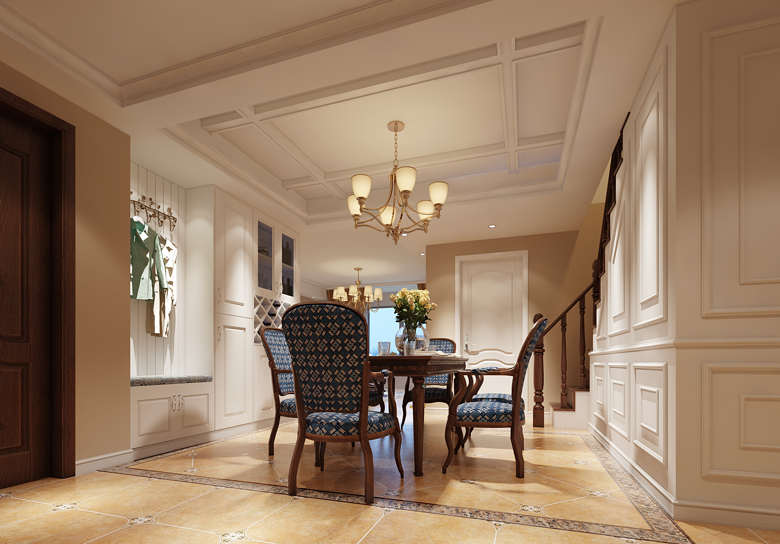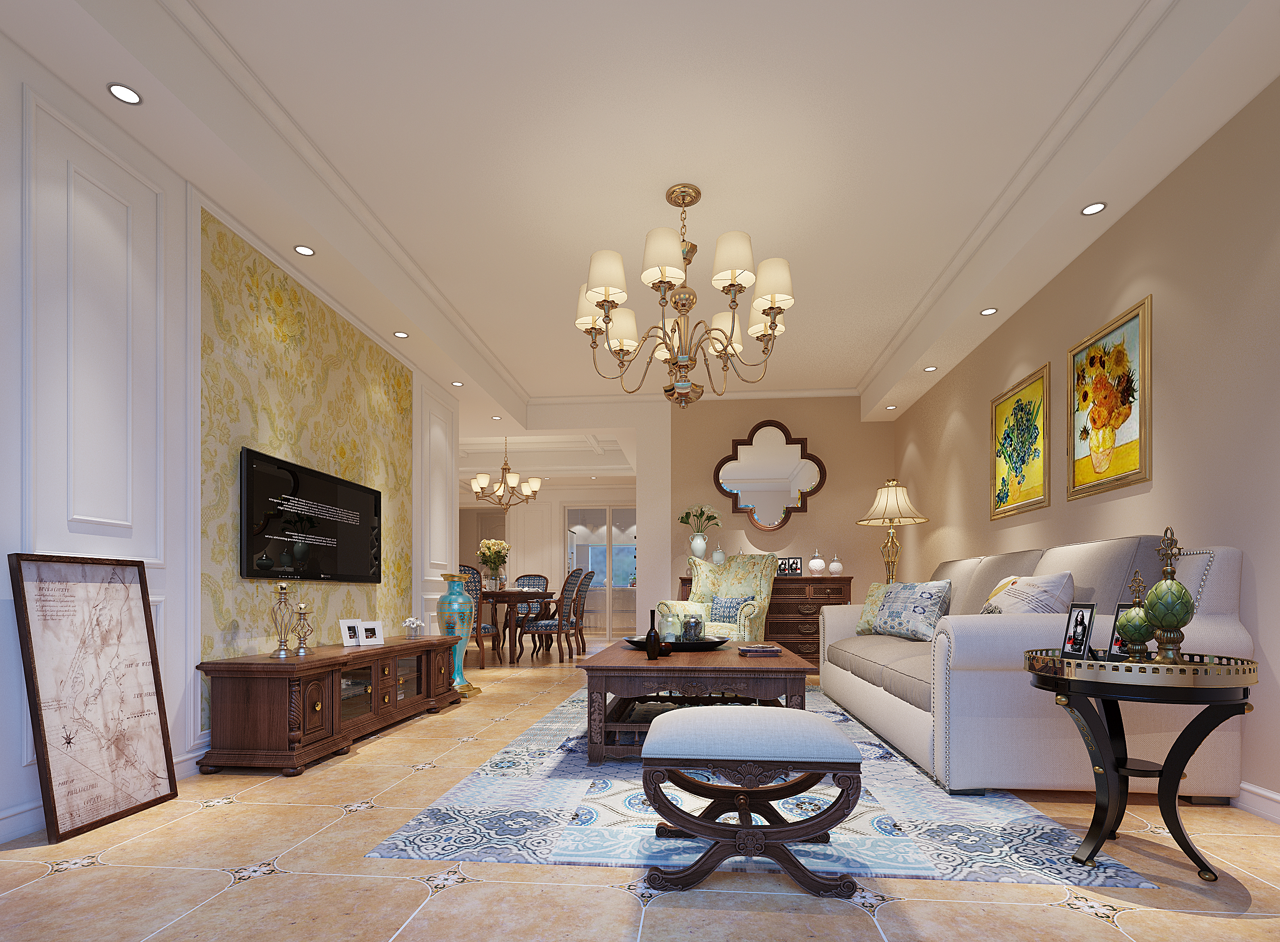 萬達臨湖苑139平方美式裝修效果圖