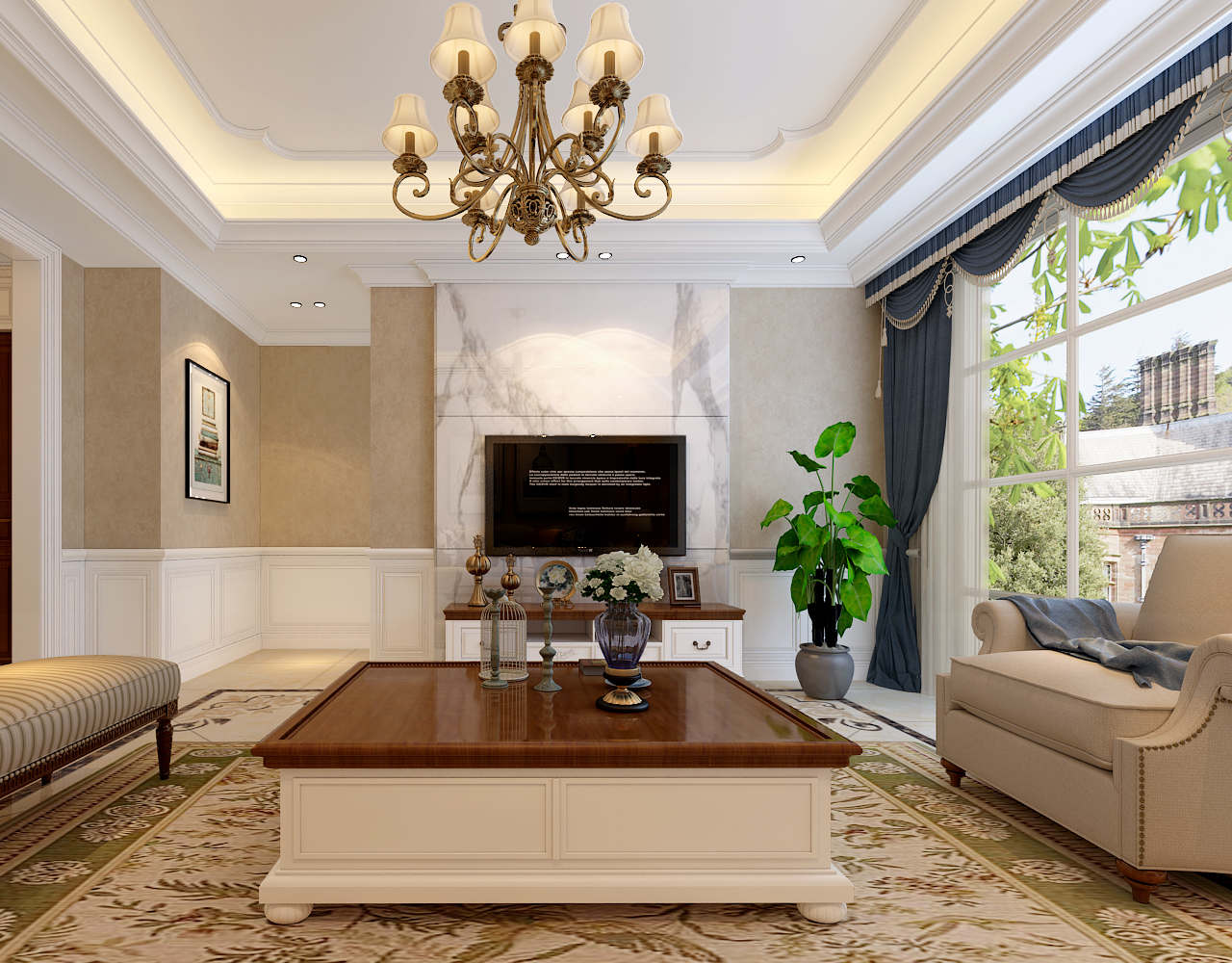 綠(lǜ)城玫瑰園-客廳裝修效果圖