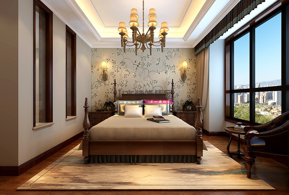 萬達臨湖苑139平方美式裝修效果圖
